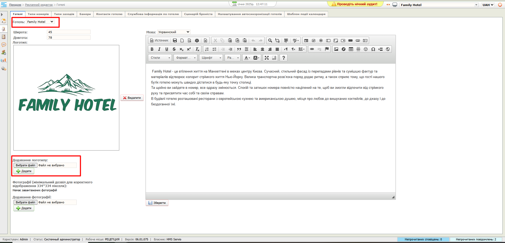 | 08:55, 5 листопада 2025 | Ідентифікатор готелю в БД HMS.png (файл) | 148 КБ | Sushchuk.a | 1 | ||