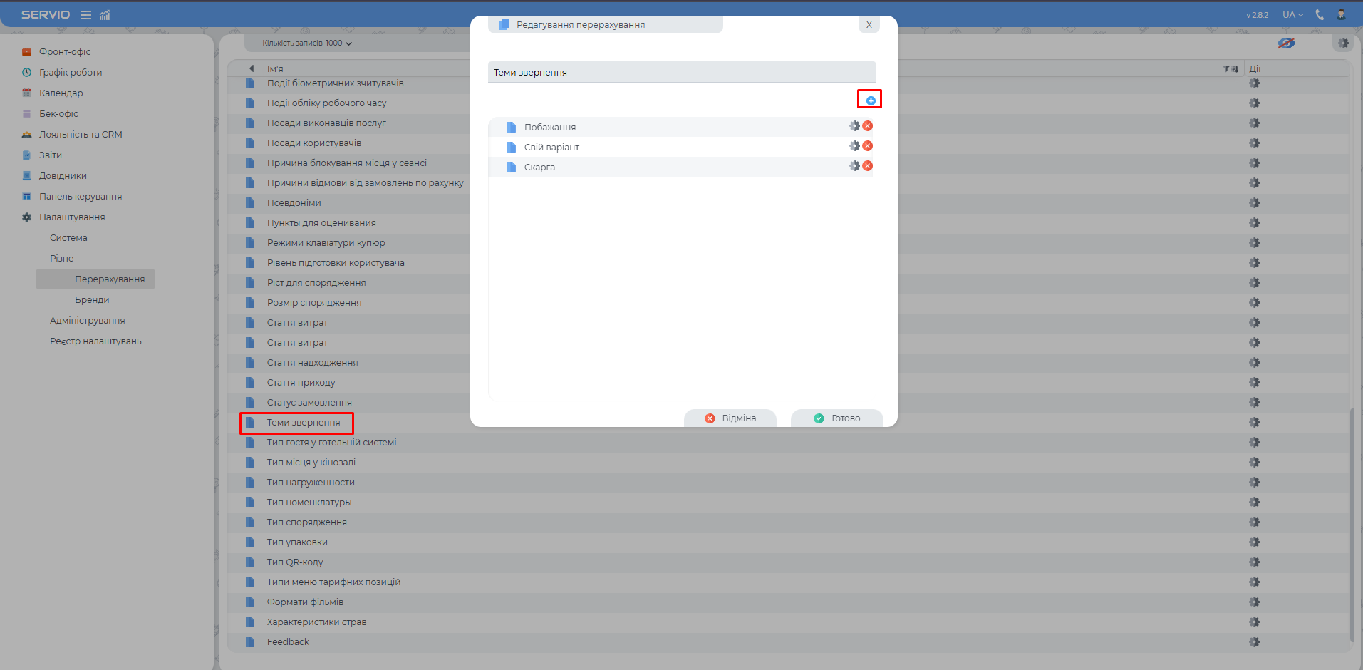 Щоб додати тему зверення, потрібно відкрити Теми зверення, натиснути блакитний хрестик