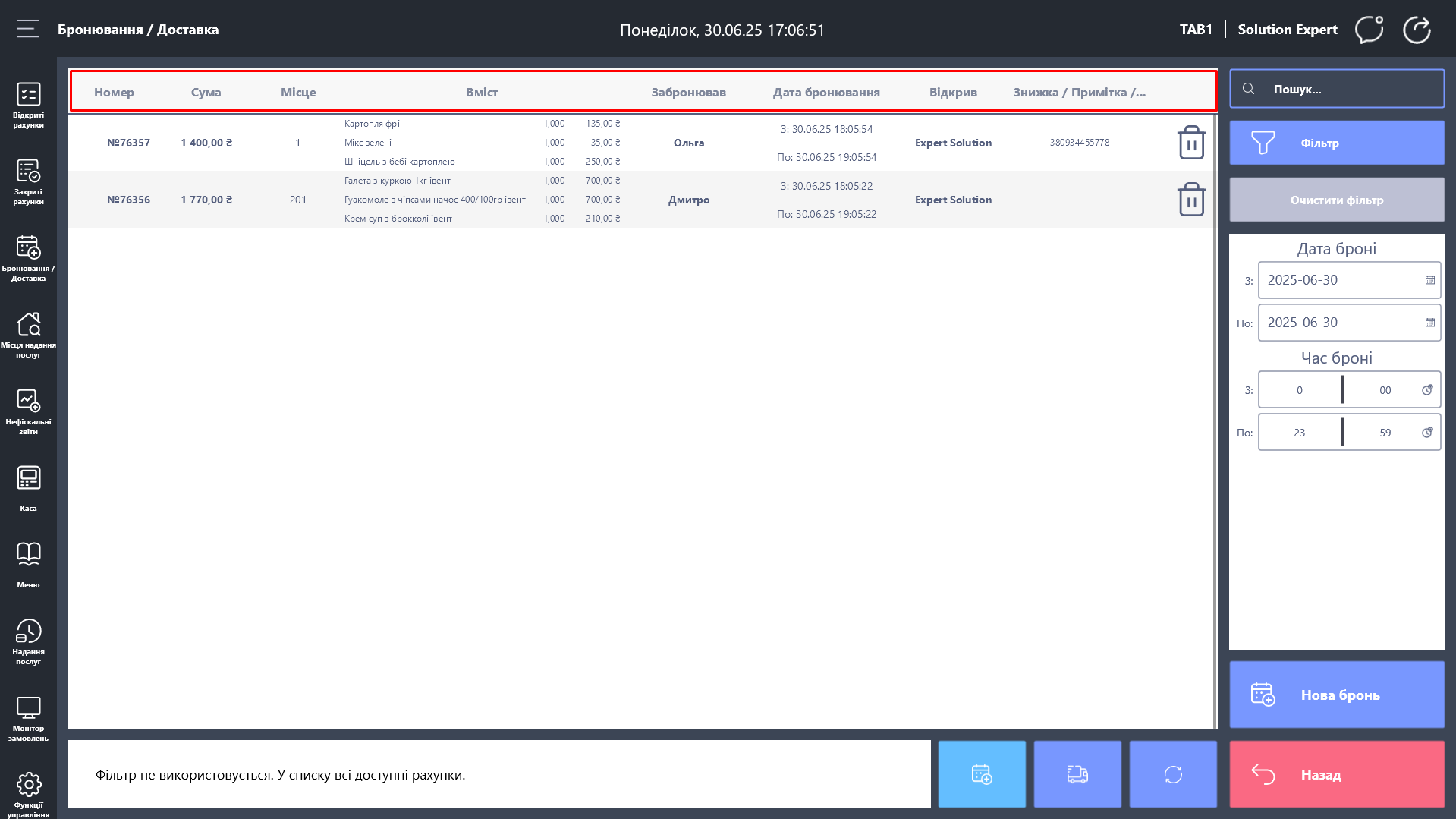 Рахунки бронювання у вікні Відкриті рахунки.png