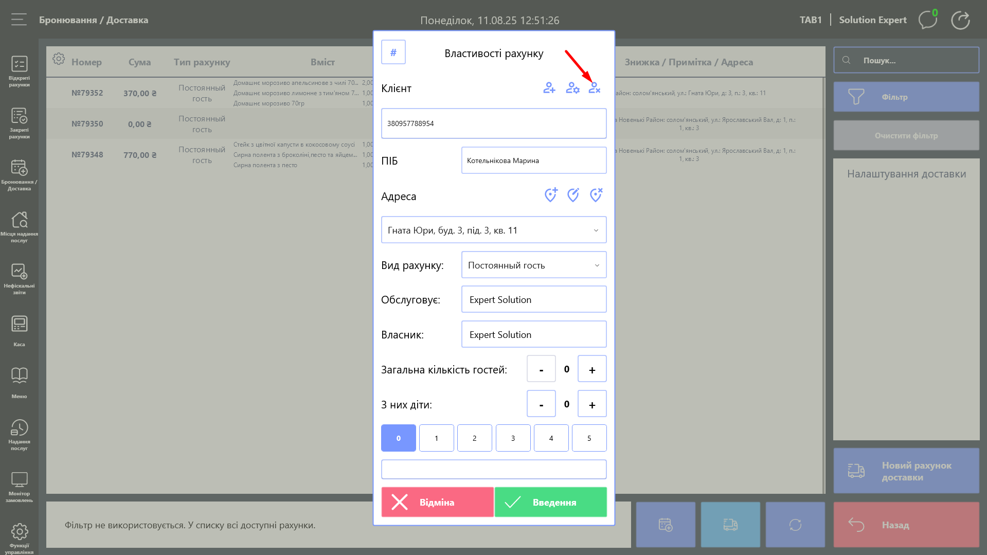 Вікно реквізитів рахунку доставки. Номер телефону.png