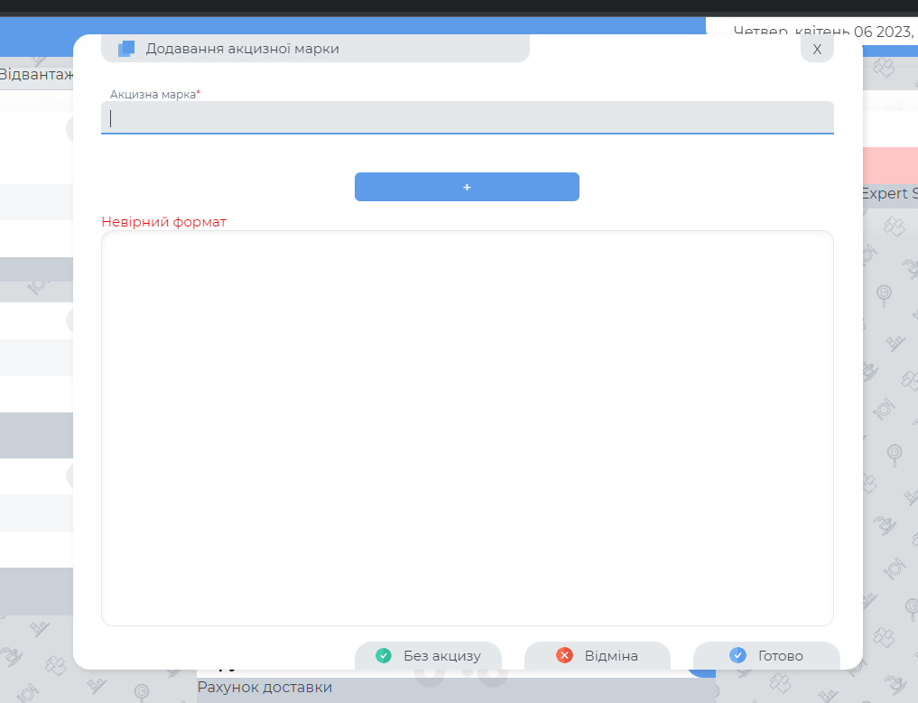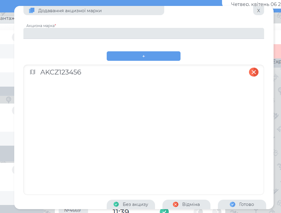 Вікно додання акцизної марки