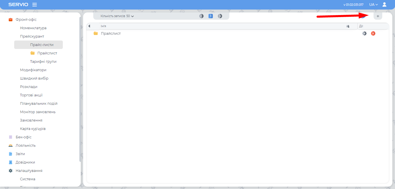 Додавання новоро прайс листа