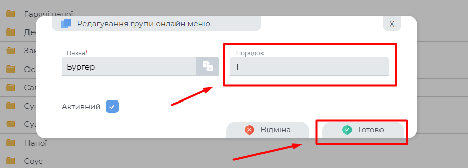 Зміни в редагуванні онлайн меню