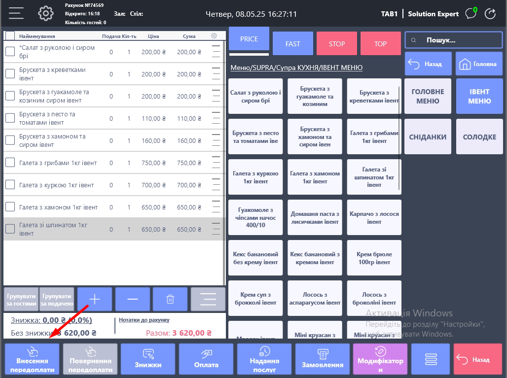 Натиснути кнопку "Внесення передплати"