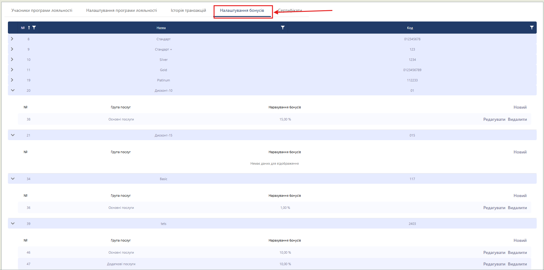 Налаштування бонусів