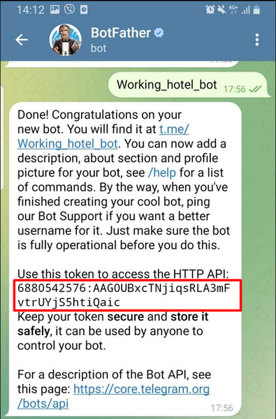 Користувач отримує токен, який потрібно вказати в налаштуваннях WD при налаштуванні чат-боту