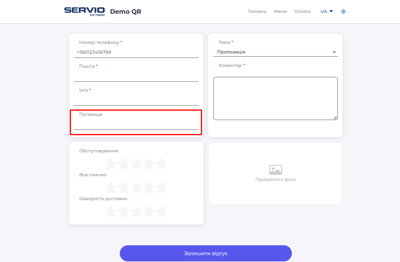 Поле прізвище для ПК