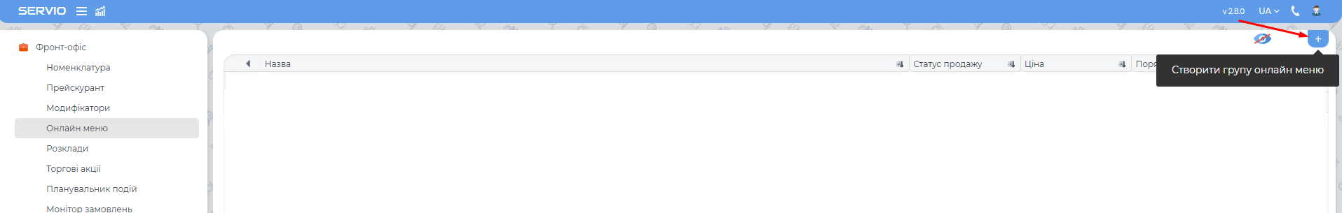 Щоб стоврити групу онлайн меню, потрібно натиснути на плюс зправа